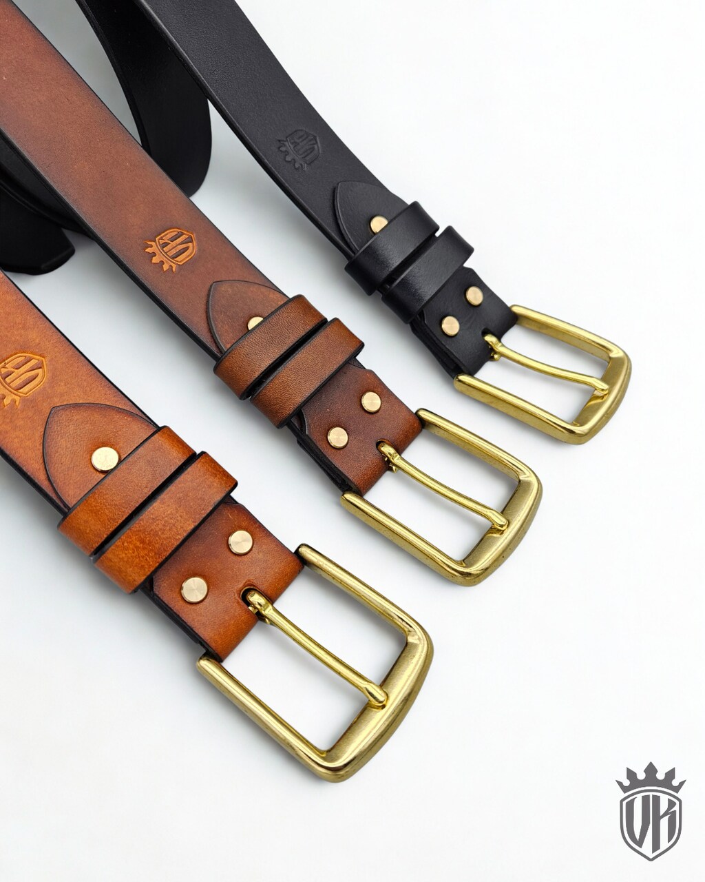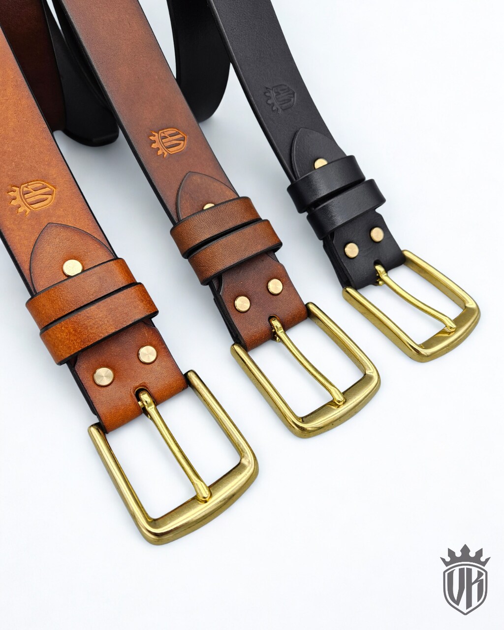 Każdy pasek wykonany jest ze skóry grubości około 4mm i szerokości 38mm.